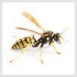 Wasps have a distinct head with chewing mouth parts, short elbowed antennae, and large compound eyes. The thorax and abdomen are marked with yellow, red or brown on a black background. The wasps have four clear or smokey brown wings and a long stinger. Yellow jackets are usually marked with bright yellow and black patterns and are about 3/8 to 5/8 inches long. The baldfaced hornet is similar in appearance except that is is white and black and 5/8 to 3/4 inch long. Paper wasps are marked with yellow, brown or red patterns on black and are 5/8 to 3/4 inch long.